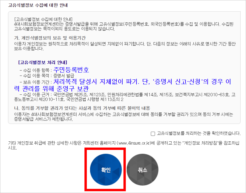 홈페이지 바로가기 : https://www.4insure.or.kr/ins4/ptl/Main.do