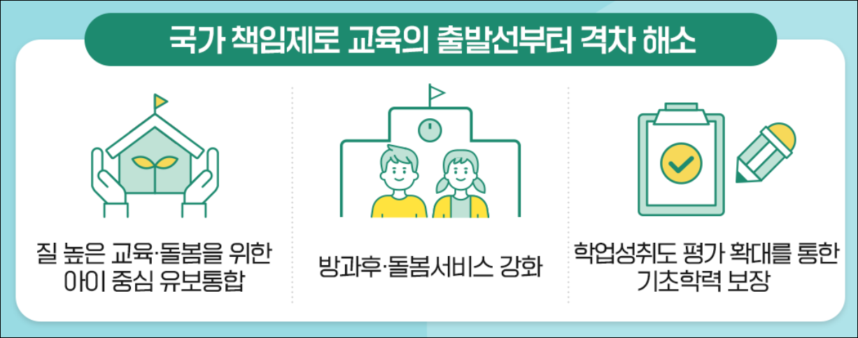 교육부 주요 업무 알아보겠습니다. 먼저 새 정부 업무보고 인데요. 국민과 함께 만드는 교육자율 속에서 성장하는 인재를 만드는 것을 목표로 하고 있네요. 국가 책임제로 교육 출발선부터 격차를 해소할 예정이라고 합니다 .
