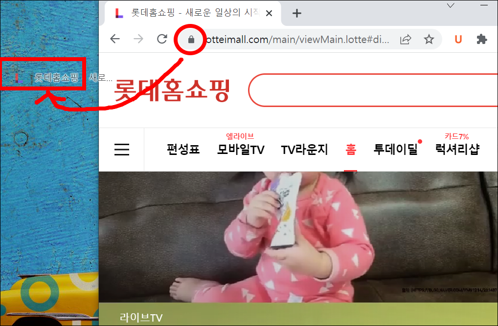 바탕화면 롯데홈쇼핑 만들때 더 간단한 방법이 있는데요. 크롬이나 엣지 등 어떤 브라우저건 상관없이 다 이렇게 하시면 됩니다.