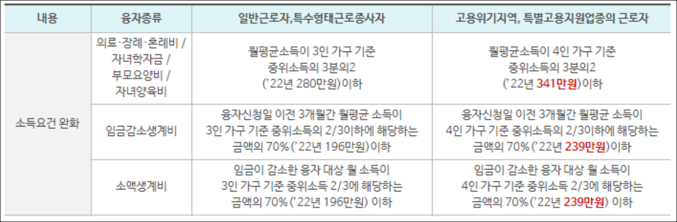 - 월평균소득 280만원이하이며 자세한 소득요건은 아래와 같습니다.