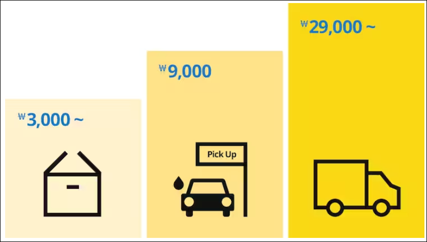 픽업서비스 배송료는 9,000원부터 시작되는데요. 이용방법은 다음과 같습니다.