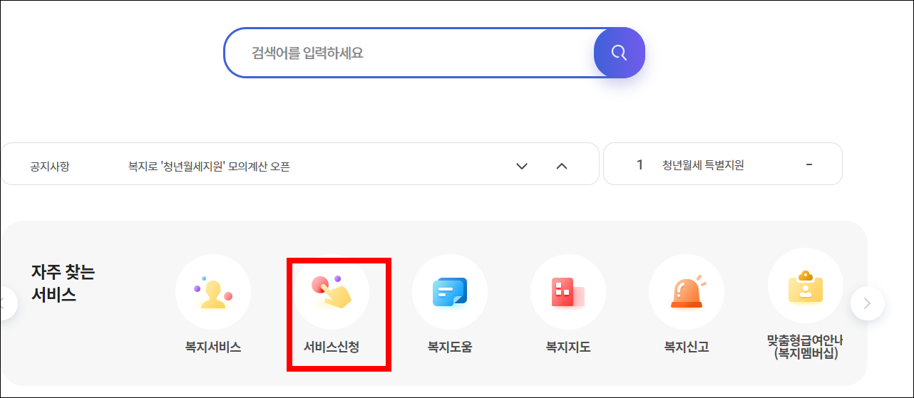 4. 메인화면 > 서비스신청 아이콘 클릭합니다.