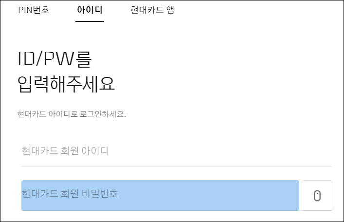 2. pin번호 입력 혹은 아이디와 비번 로그인을 진행합니다.