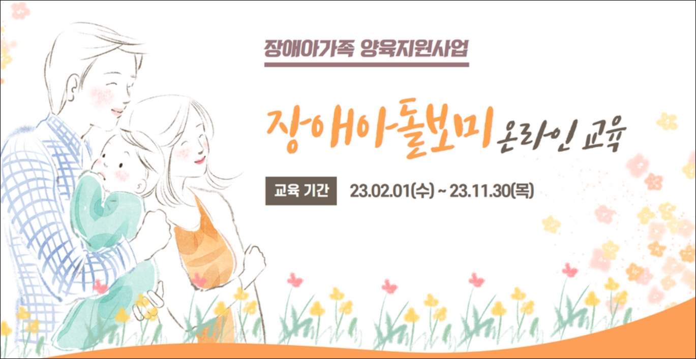 장애아돌보미 온라인교육은 매년 2월부터 11월30일까지 교육기간이며 장애아가족의 양육지원사업을 진행합니다. 해당사이트 바로가기는 아래와 같습니다.
