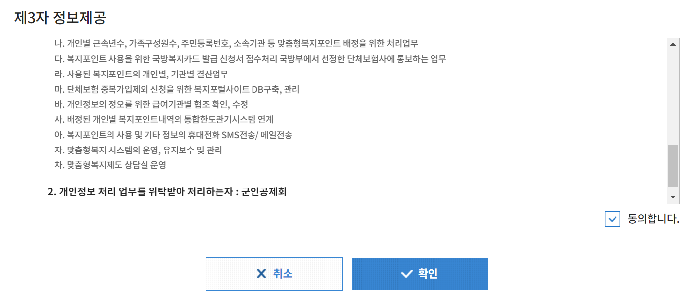 2. 약관 및 개인정제공에 동의후 다음버튼 클릭하기