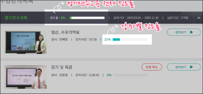 4. 강좌를 이수한 후에는 수강 현황을 확인하세요.