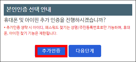 5. 본인인증 선택에서 추가인증을 선택하세요.