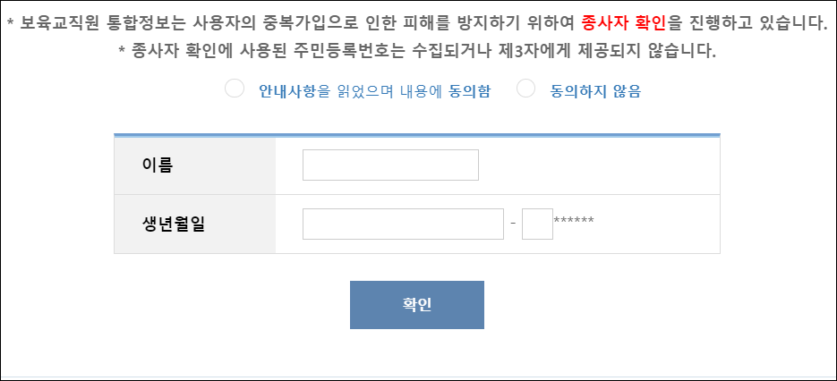 3. 이름 및 생년월일 입력 후 확인버튼 클릭하기