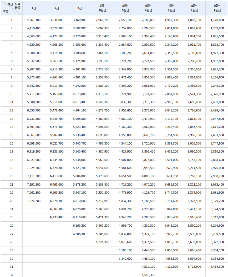 안녕하세요. 오늘은 2023년 직종별 공무원 봉급표 안내해드리겠습니다. (월지급액, 단위 : 원)