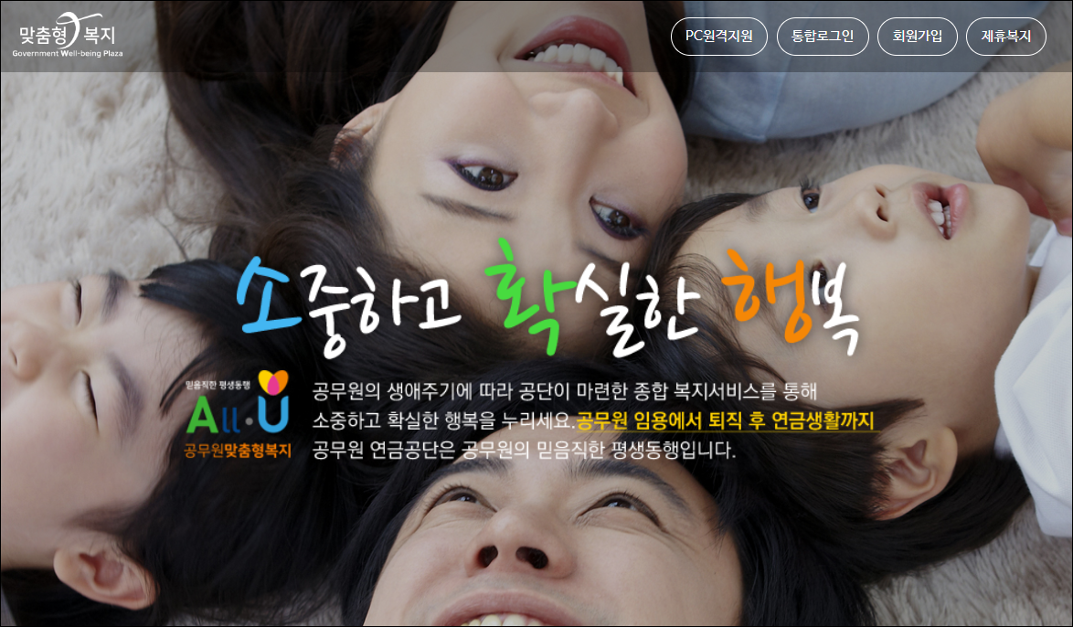 공무원 종합 복지서비스를 통해 임용부터 퇴직시까지 연금생활을 누릴 수 있도록 보장해주고 있는데요. 해당사이트 바로가기는 아래와 같습니다.