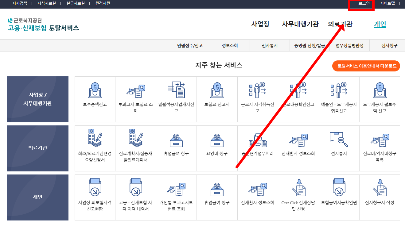 근로복지공단 토탈서비스 홈페이지 바로가기 (total.comwel.or.kr)