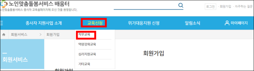 노인맞춤돌봄서비스 생활지원사 직무교육 신청방법
