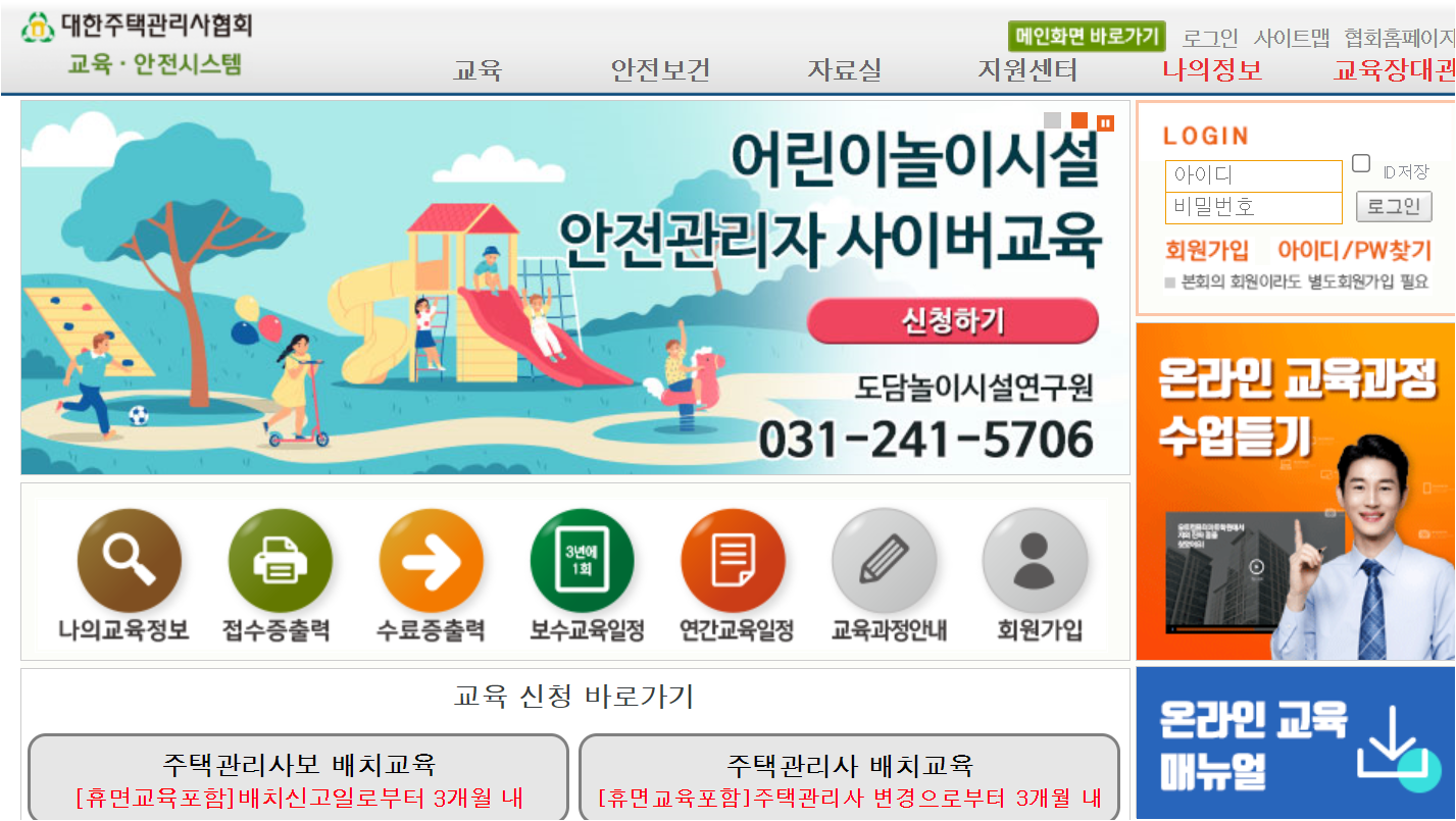 대한주택관리사협회 교육안전시스템 홈페이지 :