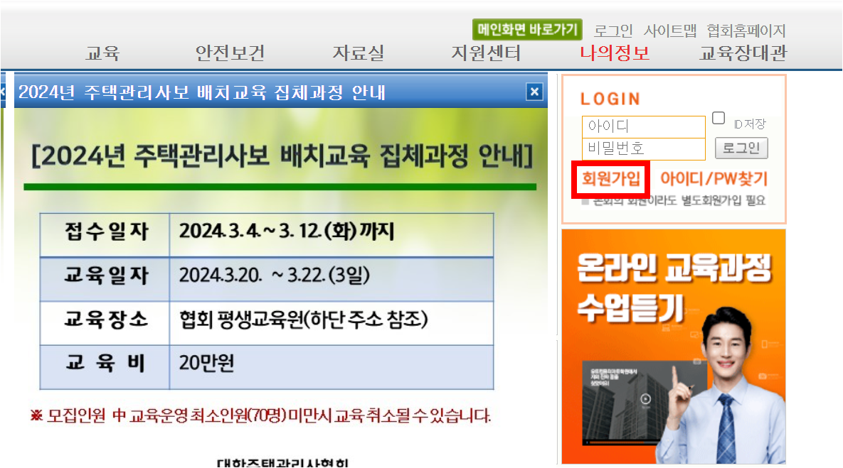 대한주택관리사협회 교육안전시스템 홈페이지 :