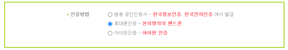 2. 실명인증을 위해 휴대폰인증을 선택 후 인증을 완료하세요.