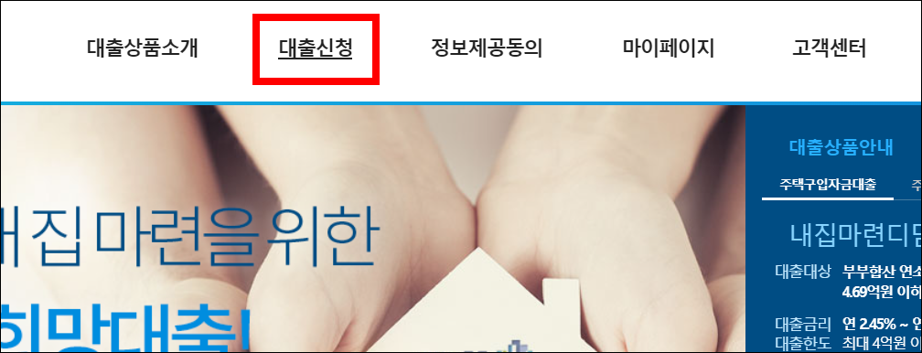 5. 메인메뉴 대.출신청을 클릭하세요.
