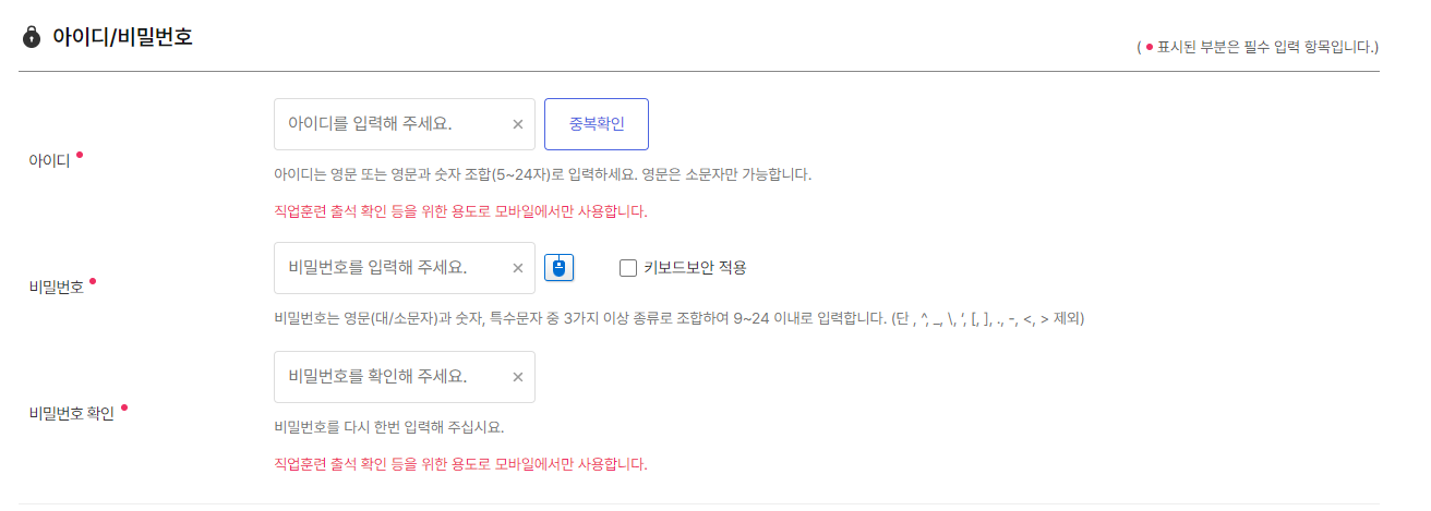 6. 사용하실 아이디 및 비밀번호를 입력하세요.