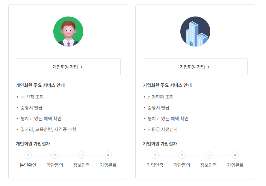 2. 구직자인경우 개인회원가입을 선택하시고 구인자인경우 기업회원을 선택하세요.