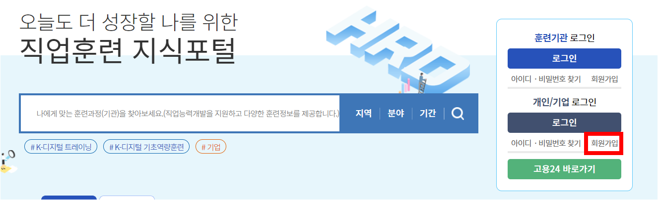 직업훈련포털 hrd-net 는 고용노동부에서 제공하는 직업능력개발사이트인데요. 구직자와 재직근로자를 위한 다양한 직업훈련과정을 제공하고 있습니다. 해당사이트 바로가기는 다음과 같습니다.