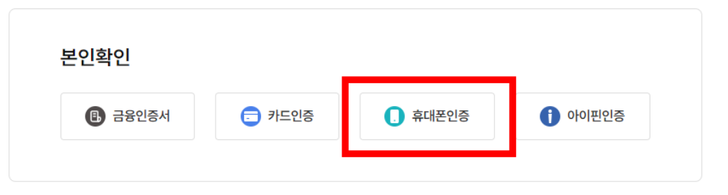 4. 본인확인을 위해 휴대폰인증 버튼을 클릭하여 본인인증을 완료하세요.