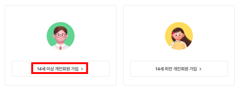 3. 14세이상 개인회원가입 버튼을 클릭하세요.