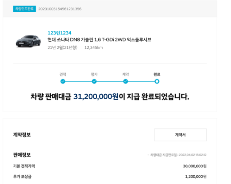 7. 탁송기사에게 차량을 인도하시면 이후 판매된 차량의 대금이 입금됩니다.