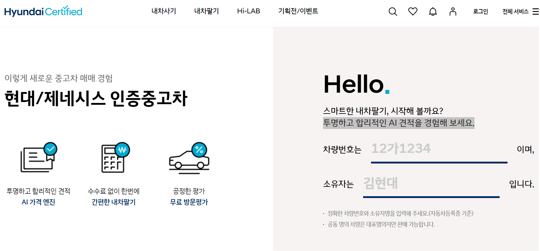 현대자동차 중고차매매 홈페이지 :