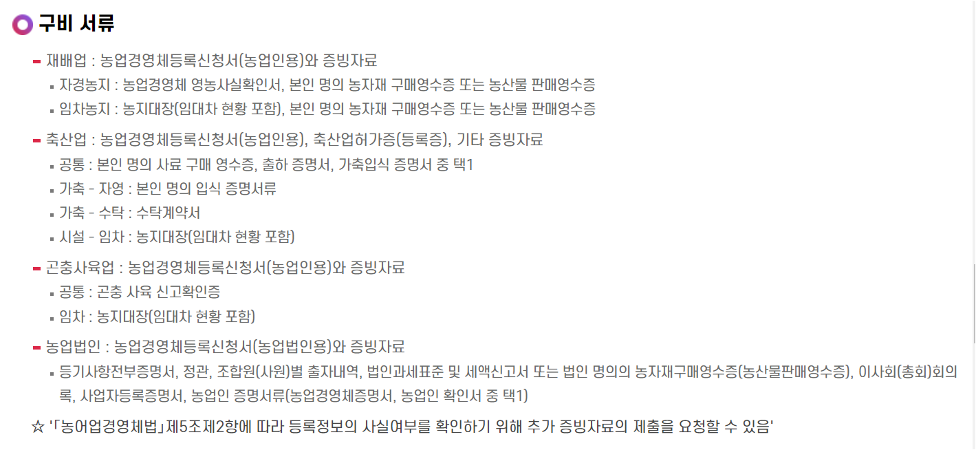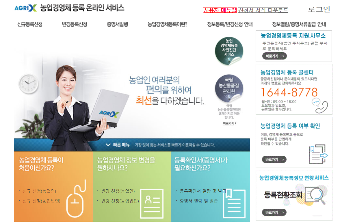 농업경영체 등록 온라인 서비스 홈페이지 :