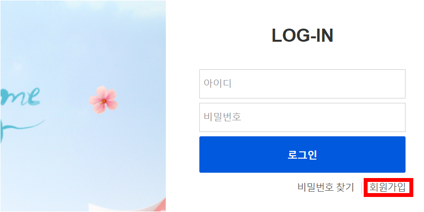1. 아래 링크를 통해 홈페이지에 접속하신 후 회원가입 버튼을 클릭하세요.