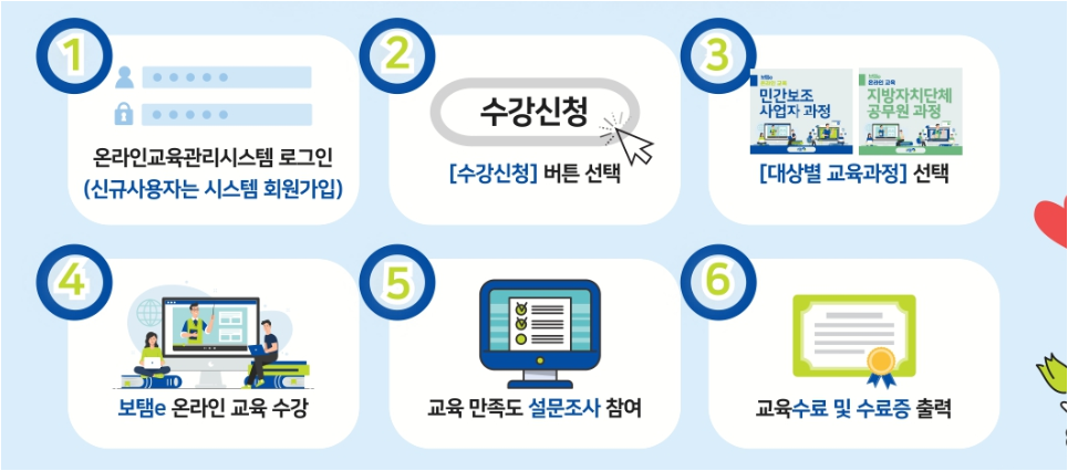 보탬e 시스템 지방자치단체공무원을 위한 온라인교육을 제공하는 사이트입니다. 상설교육은 매월 홈페이지 공지사항을 통해 공지되며 선착순 마감됩니다. 수강인원이 마감되면 다른 교육과정을 접수해야 하며 추가 중복신청 불가합니다.