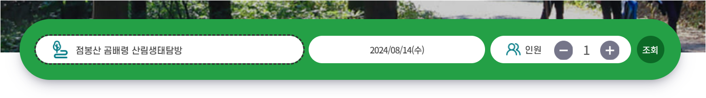 회원가입 후 로그인까지 하셨다면 검색에서 곰배령을 선택하신 후 날짜와 인원을 선택하셔서 조회를 하셔야 합니다. 그다음 예약을 완료하시면 됩니다.