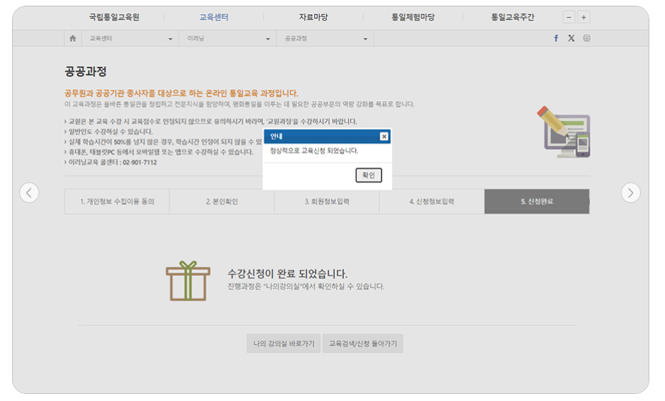 5. 신청인정보를 모두 입력하면 정상적으로 교육신청이 완료됩니다.