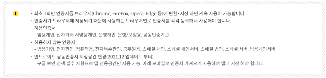 -로그아웃 후 확인: 등록이 완료된 후, 로그아웃 후 다시 로그인하여 공인인증서가 정상적으로 등록되었는지 확인합니다.