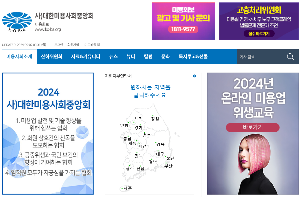 대한미용사중앙회 홈페이지서 지역별 교육 일정을 확인할 수 있습니다.