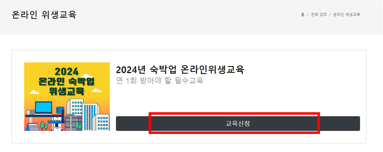 교육 이수에 대한 자세한 정보는 대한숙박업중앙회 위생교육 공식 사이트를 참고하시면 됩니다.
