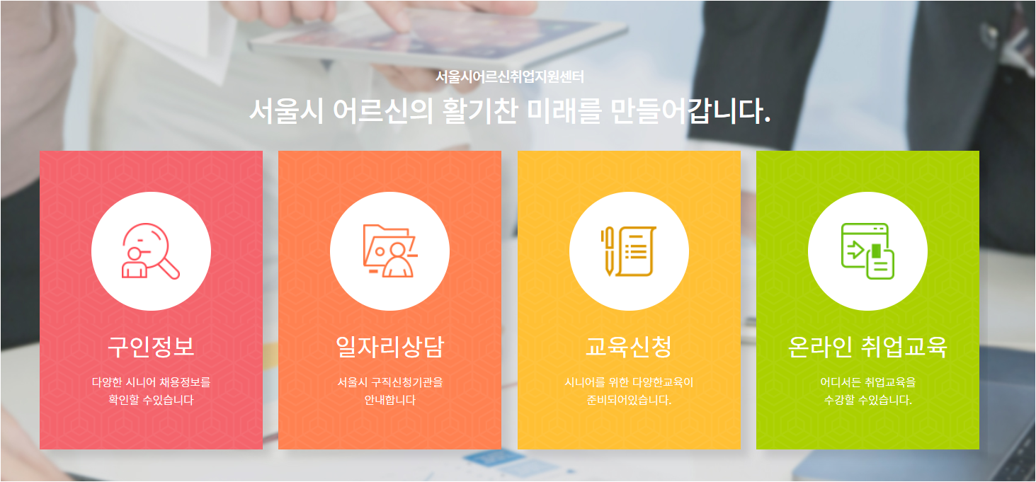 - 서울시 노인일자리센터: 서울시 노인일자리센터에서 서울 지역의 어르신 일자리 지원 정보를 확인할 수 있습니다.