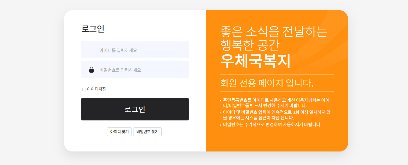 - 로그인: 회원가입이 완료되면 로그인하여 다양한 복지 정보를 확인할 수 있어요.