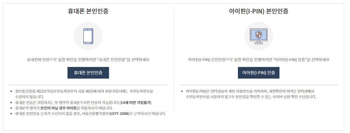 회원가입 절차: 본인 인증 후 필요한 정보를 입력하여 회원 가입을 완료합니다.