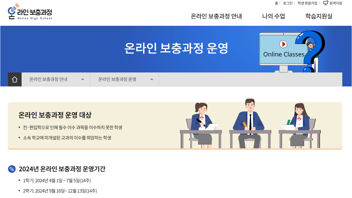 고등학교 시기는 학생들에게 중요한 터닝 포인트가 되는 시기입니다. 온라인 보충과정을 적극 활용해 자신의 목표에 한 걸음 더 가까워지세요.
