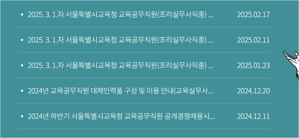 - 서울시교육청 공식 홈페이지 내 "교육공무직 채용 시스템"을 방문합니다.