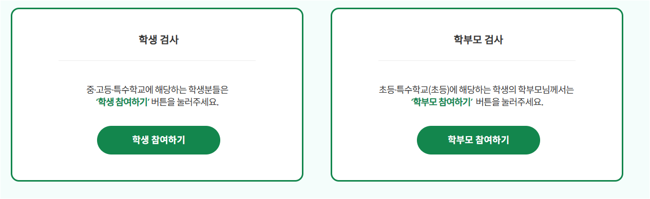 학생정서행동특성검사는 초중고교생을 대상으로 매년 4월달에 실시되는 심리검사인데요. 학교에서 부여받은 참여번호를 통해 진행해야 하며 참여번호를 잊은경우 학교에 문의하셔야 합니다. 중고교생은 학생본인이 직접 설문형식의 질문에 답변하며 검사를 해야 하며 초등학교 및 특수학교의 경우에만 학부모님이 참여할 수 있습니다. 특히 4월1일~4월30일까지 진행되므로 기간내에 반드시 검사를 완료해야 합니다.