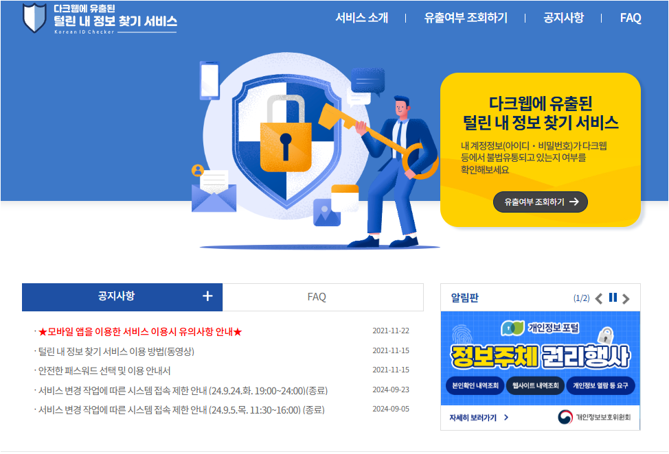 털린 내 정보 찾기 서비스는 해킹이나 정보 유출 사고로 인해 온라인에서 내 개인정보가 유출되었는지 확인할 수 있는 서비스를 제공하는 사이트입니다. 해당 사이트 바로가기는 다음과 같습니다.