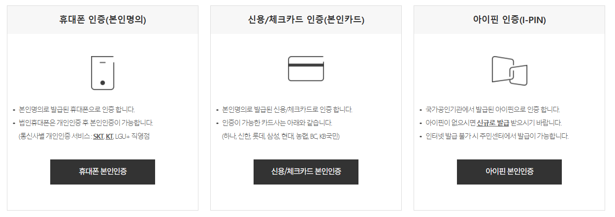 - 본인 인증을 완료한 후, 아이디와 비밀번호를 설정합니다.