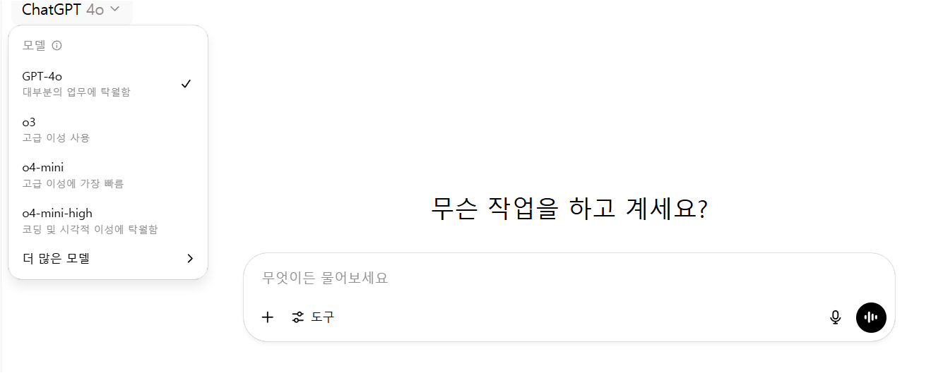 2024년 5월, OpenAI는 새로운 모델인 GPT-4o를 출시했습니다. 이 모델은 텍스트뿐만 아니라 이미지와 음성도 처리할 수 있는 멀티모달 기능을 갖추고 있으며, 이전 모델인 GPT-4에 비해 두 배 빠르고 비용은 절반입니다. GPT-4o는 무료 사용자에게도 제공되지만, 사용량에는 제한이 있습니다. 유료 구독자인 ChatGPT Plus 사용자는 더 높은 사용량 한도를 가집니다.