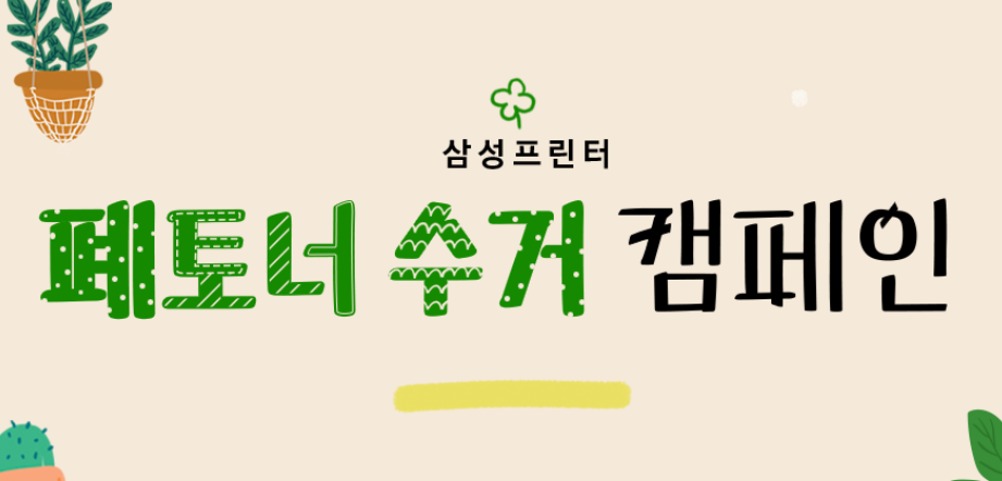 삼성전자에서도 폐토너 회수 프로그램을 운영중이며 홈페이지에서 쉽게 신청 후 수거요청을 할 수 있습니다. 이밖에캐논코리아 리사이클 캠페인, 엡손코리아 고객지원을 통해서도 회수요청을 하실 수 있으니 참고하세요.