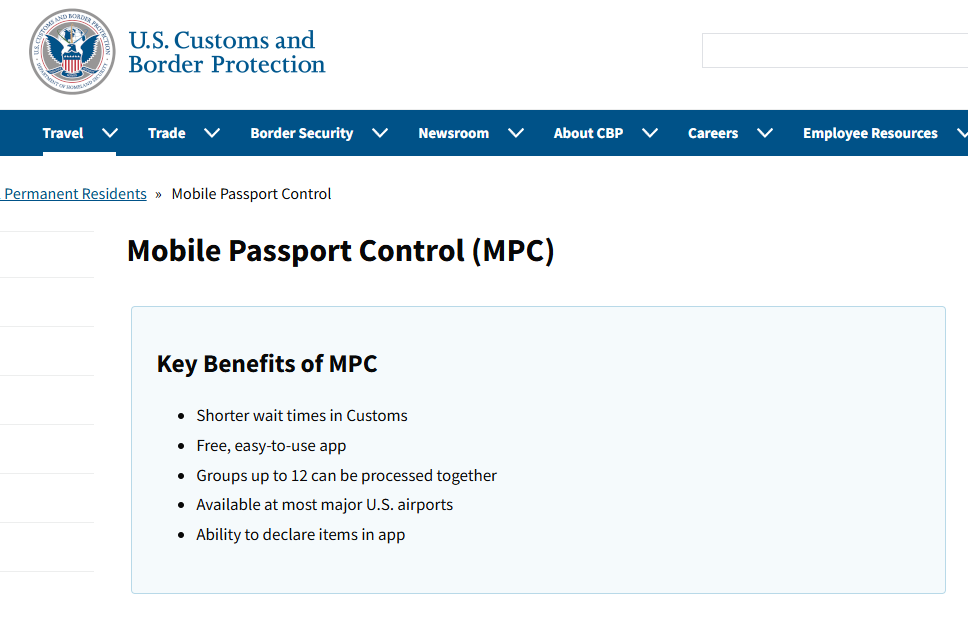 최근에는 미국 주요 공항에서 모바일 패스포트 컨트롤(MPC) 앱을 통해 입국신고를 전자 방식으로 대체할 수 있습니다. 해당 앱은 CBP 공식 홈페이지에서 다운로드 및 안내받을 수 있습니다. 전자 신고 시스템을 이용하면 줄을 서는 시간을 줄이고 빠르게 입국 심사를 받을 수 있습니다.
