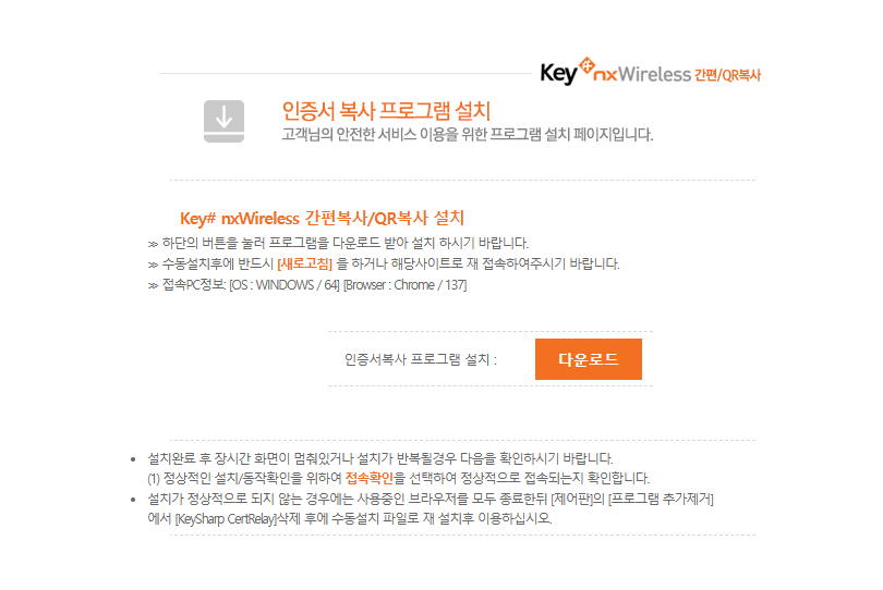 인증번호 입력이 완료되면 자동으로 인증서가 복사되고, 각 기기에서 동일한 인증서를 사용할 수 있습니다.