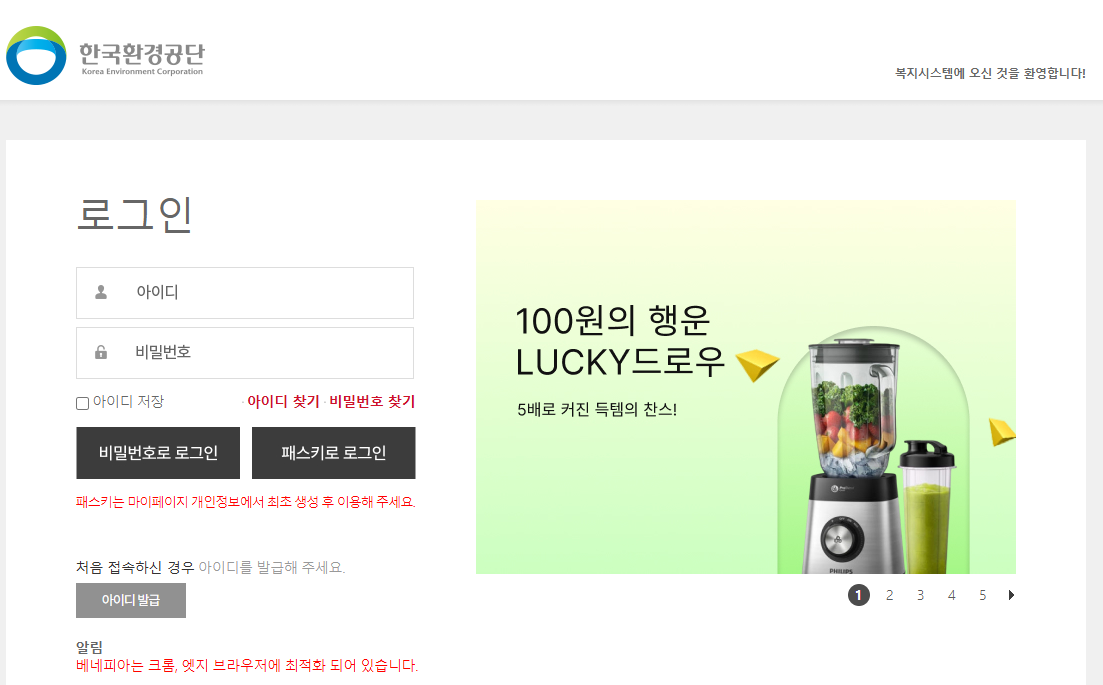 1. 한국환경공단 복리후생관 홈페이지 접속