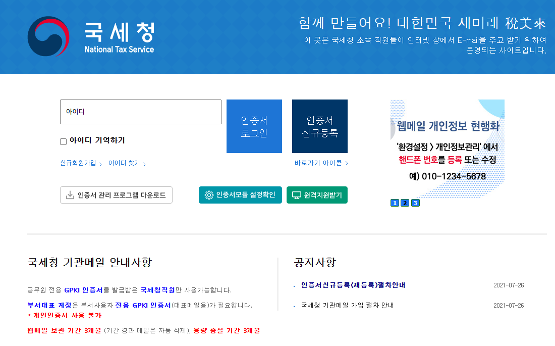 국세청 웹메일 접속 방법