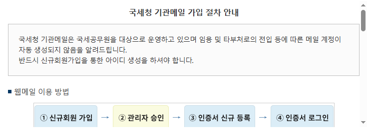 국세청 웹메일 접속 방법
